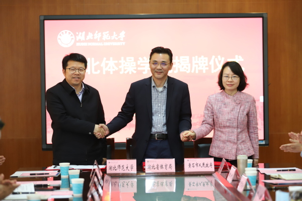 揭牌仪式上,水兵、李宏、李丽代表三方共同签订了《共建湖北体操学院战略合作协议》,学校人事处与体操专家团队代表签订了《聘请体操专家团队意向协议书》。