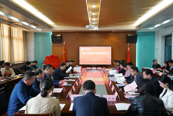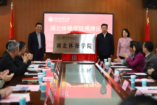 (4月13日,湖北体操学院揭牌仪式在科技大楼505会议室举行)