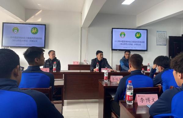 本网讯 10月31日,为期3天的2022年中国足协三级裁判员培训班(正妹av 站)在我校正式开班,黄石足协裁委会主任王庚、正妹av 党总支副书记罗学玲、正妹av 副院长朱施成、正妹av 教师吴斌老师出席本次开班仪式。我校共有36名足球专项学生参加本次培训班学习,开班仪式由吴斌老师主持。