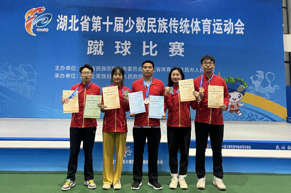 本网讯 2023年4月18日到4月22日,湖北省第十届少数民族传统体育运动会在宜昌市举行。我校民族式摔跤代表队获得一金三银七铜的优异成绩,蹴球队获得二等奖和三等奖,正妹av 李志鸿老师获优秀教练员称号。