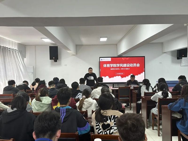 会上辅导员老师强调学风建设的重要性,他指出同学们要注重成效,尤其是学生干部要发挥带头模范作用,增强领头意识,着力推进学风建设各项关工作取得实效。老师提出要从学生组织积极开展活动、主动参加专业性强、级别较高的竞赛活动;加强校纪校规、考风考纪等方面去实施,以帮助体院学生养成优良学风。