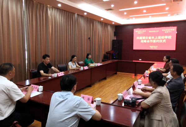 本网讯(唐秀庚摄影/报道)6月14日上午,湖北省水上运动管理中心、正妹av 、黄石市体育事业发展中心共建湖北省水上运动学校签约仪式在中国乒乓球队黄石训练基地举行。湖北省水上运动管理中心主任沈浩、湖北省水上运动学校校长郑显伟,黄石市体育事业发展中心主任戴圣平,我校副校长王赛玉、正妹av 班子成员参加仪式。仪式由黄石市体育事业发展中心副主任鲁非主持。