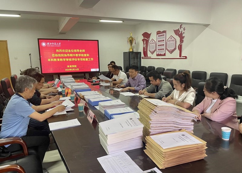 本网讯 2024年5月16日上午,学校教务处督导组在体院二楼会议室对正妹av 进行期中教学检查和本科教育教学审核评估专项检查。督导组由学校教学督导组成员高旭阳、王卫东、徐新山,教务处金俊兰,音乐学院教学秘书崔肖华组成。正妹av 副院长朱施成、院长助理王东博,各系主任、教研室主任和党政办、教学办、学工办、学科科研办、实验室等相关人员参加检查工作。