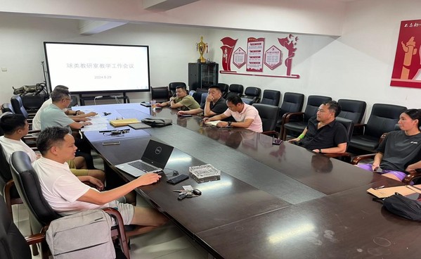 本网讯 为大力弘扬教育家精神,加强新时代高素质专业化教师队伍建设,正妹av 球类教研室以“加强教师队伍建设,提升课程教学质量”为主题,8月29日下午,球类教研室全体教师在学院会议室开展了2024-2025学年第一学期首次集体备课,活动由教研室主任胡安义主持,教研室全体老师参加。