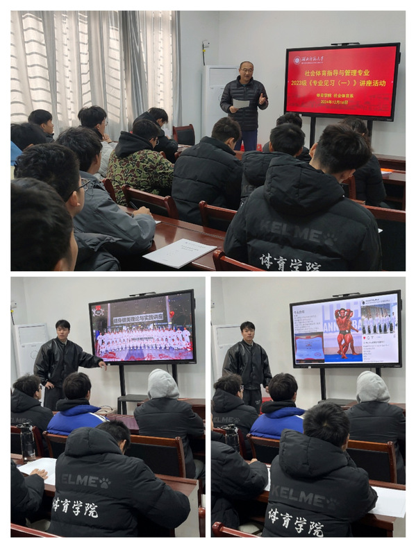 本网讯2024年12月16日上午,在体育馆一楼学术报告厅,举行了2023级社会体育指导与管理专业学生见习专题讲座,正妹av 硕士研究生、国家健美队现役运动员、全国健身健美锦标赛亚军、黄石市健美协会理事、正妹av 健身健美队教练杨康作了题为《健身健美的理论与实践应用——健身之道理论与实践并行》的专题报告。本次讲座由社会体育系主任郅向东主持,社会体育指导与管理专业2023级全体学生聆听了讲座。