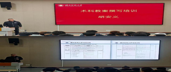 随后,纪雪艳展开了理论课教案撰写培训。课程内容与水平目标对应,课时分配与教学目标适应,内容分配均衡。结合游戏,围绕目标,以达到增强学生能力的目的。此外,纪雪艳强调,将准备活动与结束部分时间精准把控,把课堂留给学生,参与其中,强化自主练习。会议尾声,李洪健同学以自身为例做经验分享,同学们学习积极身边榜样,汲取成功经验。