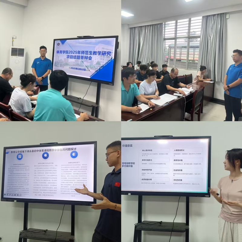 随后,20位体育教育专业师范生教学研究项目主持人按照既定顺序依次进行答辩。在答辩过程中,各位项目主持人准备充分,通过精心制作的PPT,结合清晰的讲解,从项目的研究背景、目的、方法、过程、成果以及创新点等方面进行了全面而深入的阐述。有的项目聚焦于体育教学方法的创新,提出了将游戏化教学融入中小学体育课堂的新策略,通过实际教学实验,有效提高了学生的学习兴趣和课堂参与度;有的项目针对师范生教学技能的培养,设计了一套系统的训练方案,并在实践中取得了良好的效果,为提升师范生的教学能力提供了新的思路和方法。